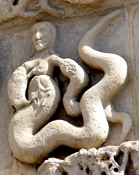 La luxure au féminin : évocation traditionnelle d'une femme nue allaitant deux serpents.