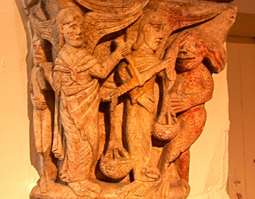 Remarquable version saintongeaise de la pesée des âmes. Réemploi roman de l'église de Saujon, Charente-Maritime.