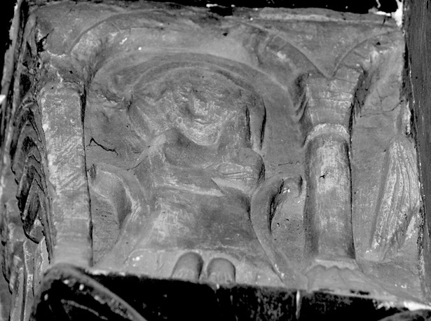 Détail du masque humain du chapiteau précédent.